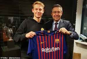 President Josep Maria Bartomeu tweeted: ‘With the arrival of Frenkie De Jong we add talent, youth and Barca style to our sporting project.