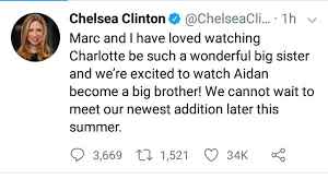 Announcing the pregnancy on Twitter, Chelsea wrote: