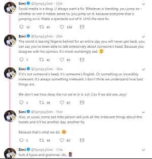 Nigerian singer, Simi is lending her voice to politics and all the drama that comes with it on Social media.