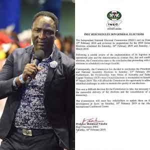 On the 7th of February, 2019 Senior Prophet Jeremiah Omoto Fufeyin, General Overseer, Christ Mercyland Deliverance Ministry (C.M.D.M), Warri, Delta State, Nigeria prophesied that the 2019 general election will be postponed.