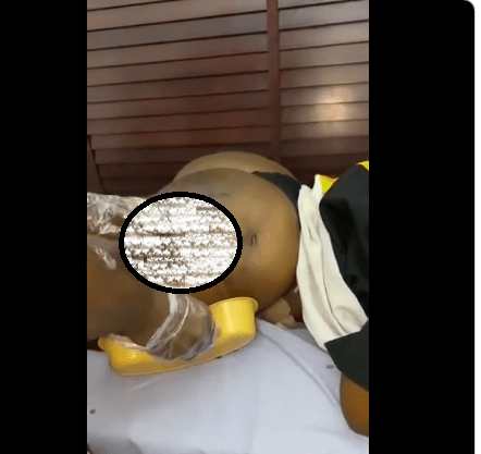 A disturbing video has been shared online showing a woman screaming out in pain as fat leaks out of her butt following a botched plastic surgery.